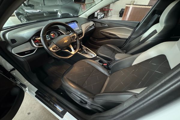 Chevrolet Onix 1.0 Turbo Premier 2022/2022. Único dono, completo, câmbio automático, flex, central Mylink, sensor e câmera de ré, volante multifuncional, piloto automático, controle de som no volante, computador de bordo, rodas de liga leve, direção elétrico, airbag e freios ABS, faróis de milha, em ótimo estado de conservação.