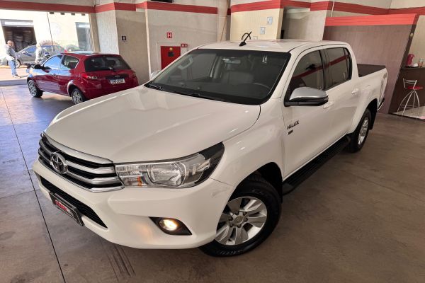 Toyota Hilux 2.7 SRV 4x4 CD 2017/2018. Completo, câmbio automático, flex, bancos em couro, banco elétrico do motorista, central multimídia, sensor e câmera de ré, volante multifuncional, piloto automático, controle de som no volante, computador de bordo, rodas de liga leve, controle de estabilidade e tração, em excelente estado de conservação.